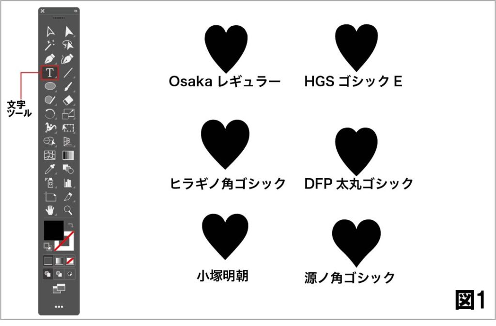 文字ツールで「ハート」と入力し、変換して♥︎の絵文字を出し、アウトライン化します。
