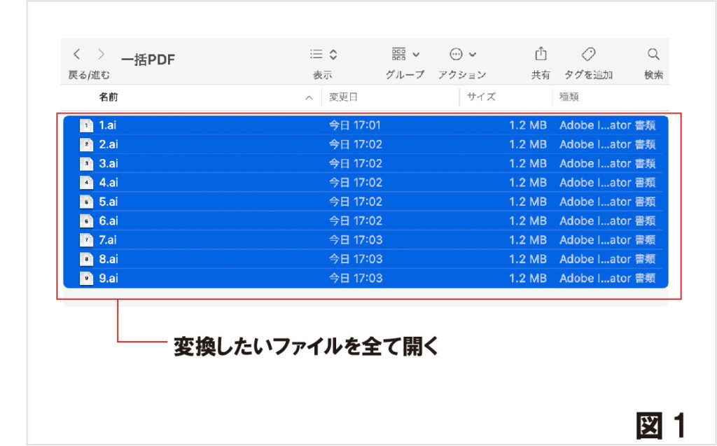 今回は複数の複数の.aiファイルを一括で.pdfに変換する方法を解説致します。