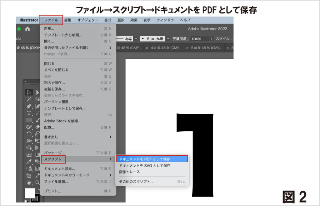 2.ファイル→スクリプト→ドキュメントをPDFとして保存を選ぶ
