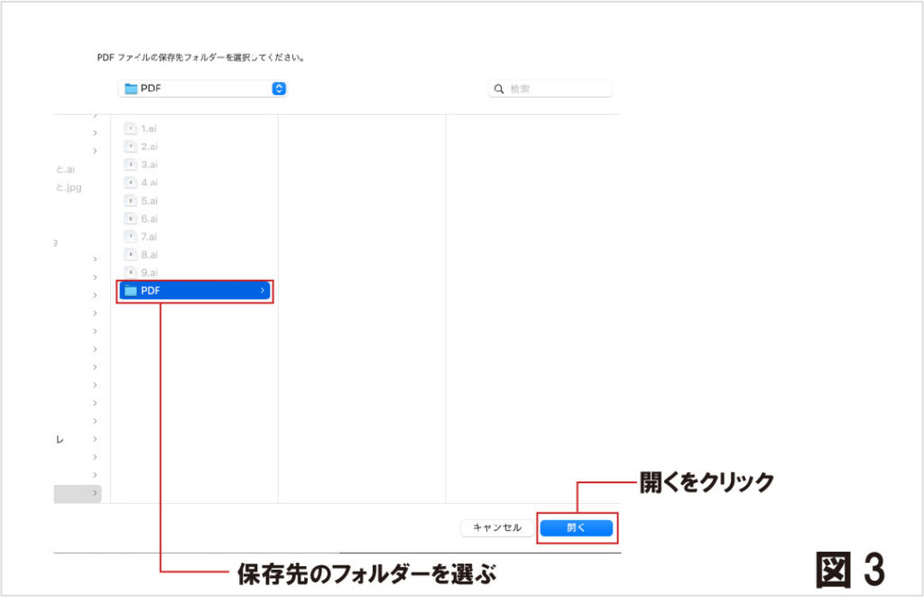 3.保存先のフォルダーを選択し、「開く」をクリック。