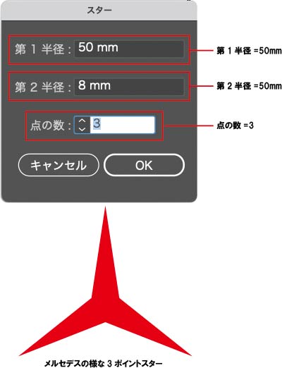 メルセデスのような3ポイントスターを描く事も出来ます。