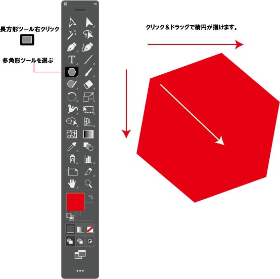 多角形ツールを選択して、そのままクリック&ドラッグすれば六角形が描けます。