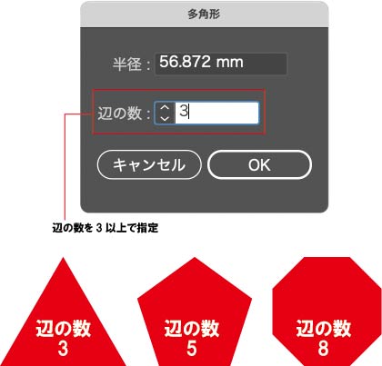 このダイアログの「辺の数」の項目に3以上の数字を入力すれば