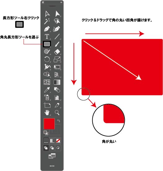 角丸長方形ツールは角の丸い長方形を描くツールです。