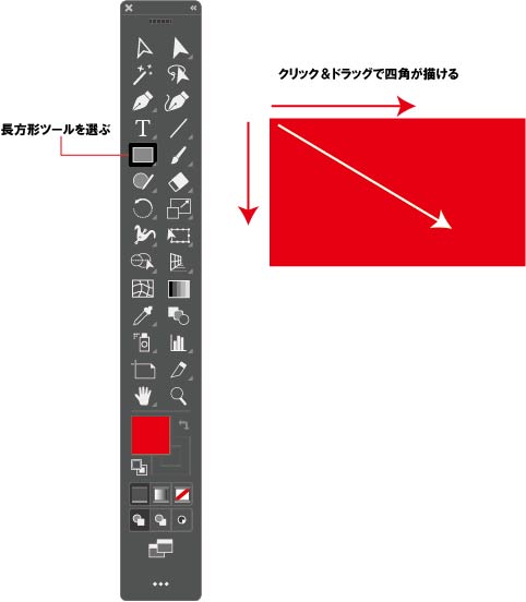 基本図形を描くには「長方形ツール」等のツールを使うことで簡単で正確に、