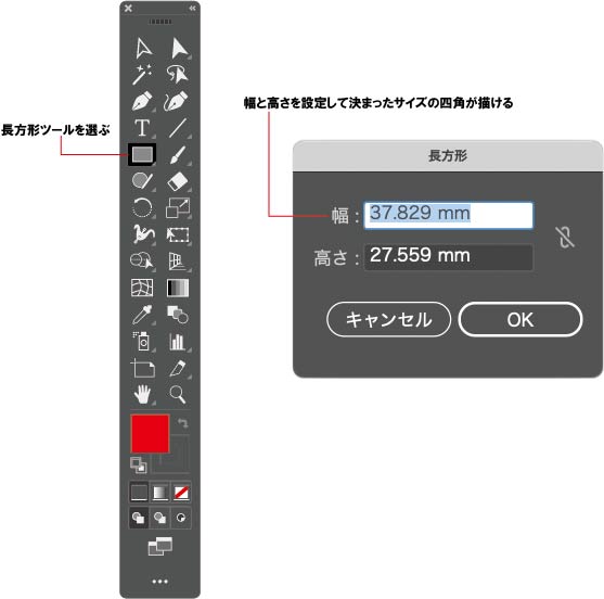 「幅」と「高さ」を入力すれば決めたサイズの四角が描けます。